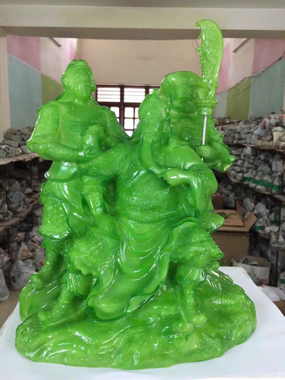 Tượng Phật Bà Quan Âm Mới Đá Lưu Ly Xanh Lá Tươi Đẹp Để Xe Hơi hoặc để bàn cao 12cm đk 7cm đế 5cm Hợp Mệnh Hỏa Mệnh Mộc ạ *** Tượng Phật Bà