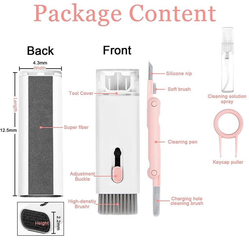 Bộ Dụng Cụ Vệ Sinh Đa Năng 7in1 Dùng Vệ Sinh Laptop / Điện Thoại / Bàn Phím / Tai Nghe / Airpods / iPhone / iPad Siêu Nhỏ Gọn Kích thước: 15x4x6cm Chất liệu: