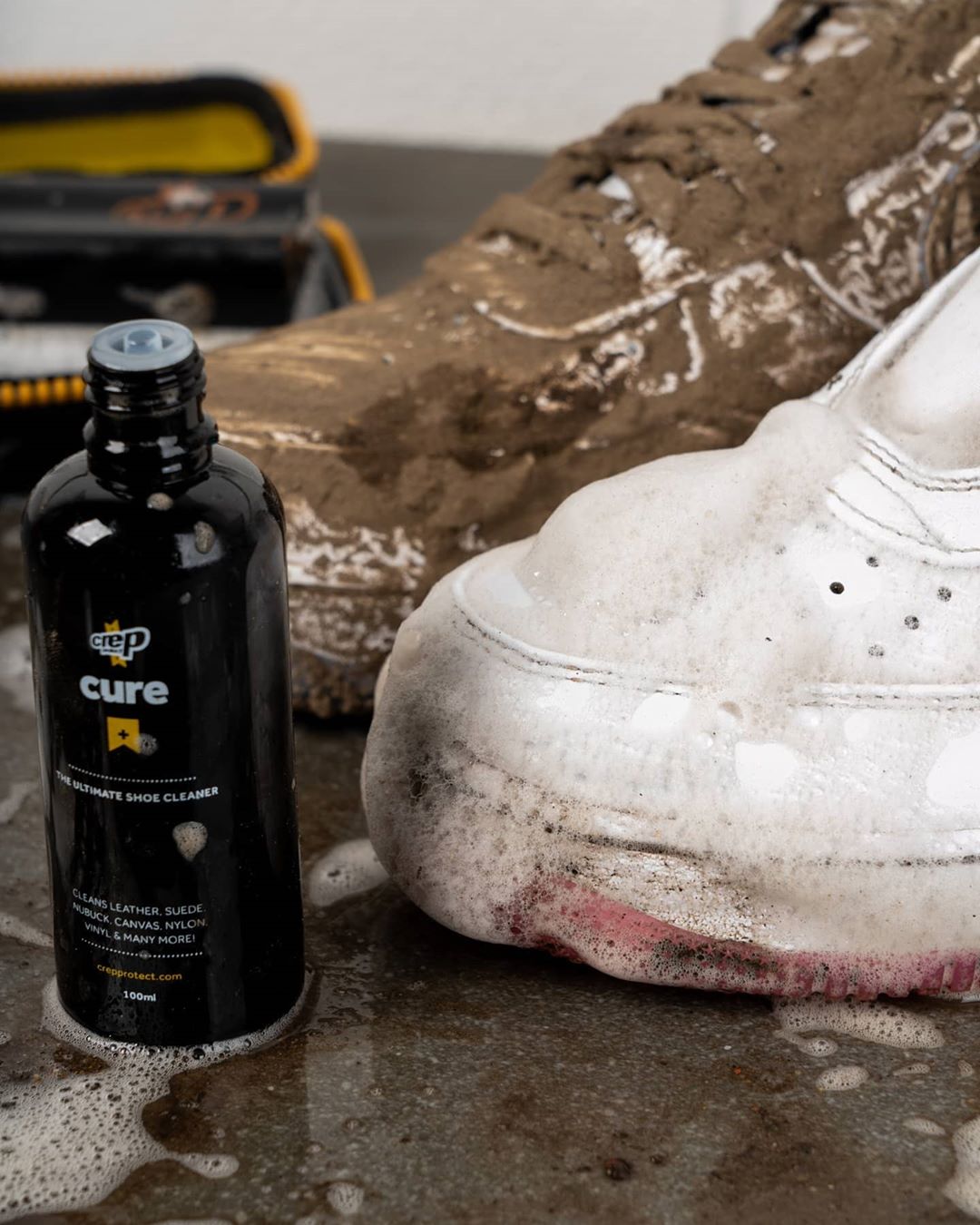 Crep Protect Cure là bộ vệ sinh làm sạch giày tuyệt vời của Crep Protect. Giúp cho dân mang giày nhẹ nhàng việc giặt giày hơn. Chỉ vài thao tác đơn giản và mất khoảng