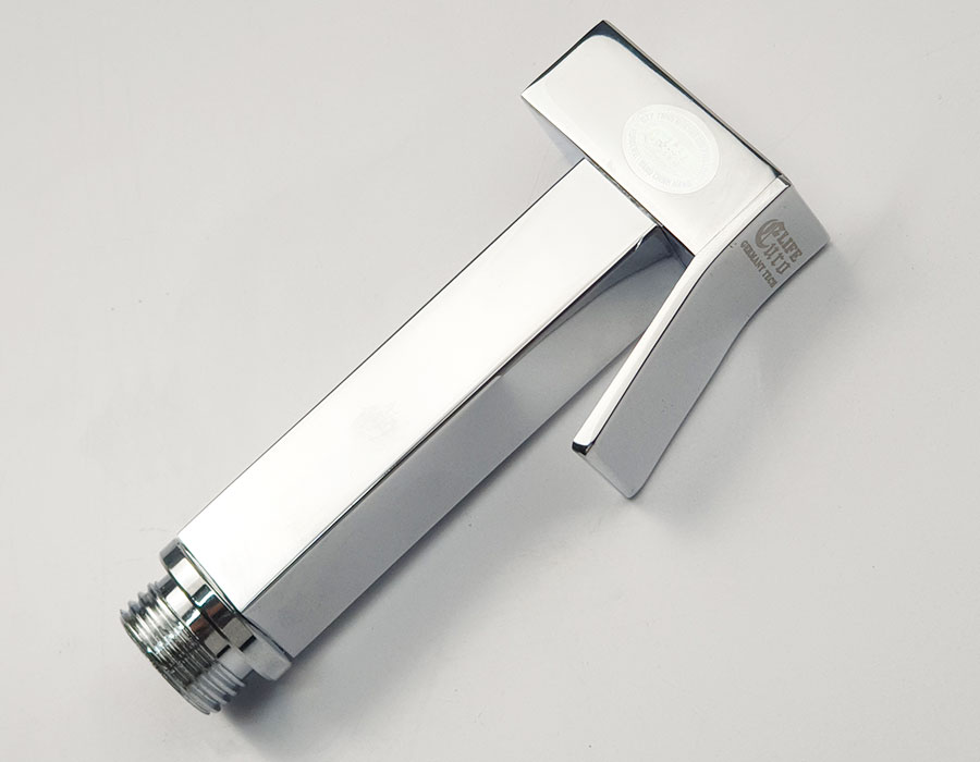 Tay xịt được sản xuất với chất liệu Đồng H61, mạ Crome 3 lớp sáng bóng. Vật liệu đạt tiêu chuẩn chất lượng Châu Âu, không bong tróc lớp xi mạ theo thời gian.