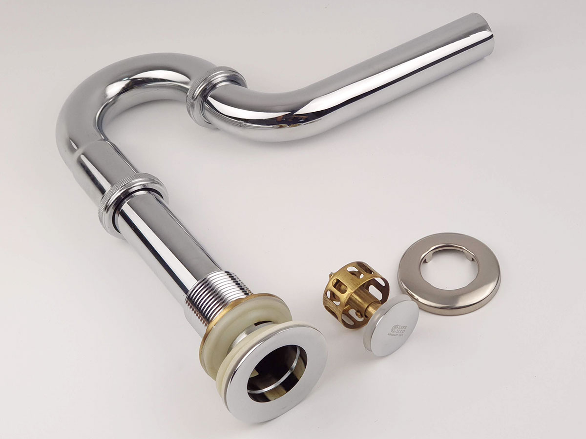 - Chất liệu : Nắp bộ xả được làm từ Đồng mạ Chrome sáng bóng. Ống chữ P được làm từ Inox