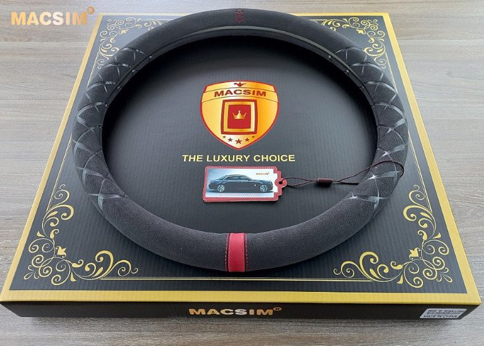 Bọc vô lăng cao cấp Macsim mã 8858 màu đen đỏ - Bọc vô lăng được sản xuất thủ công - Chất liệu da lộn chất lượng cao -