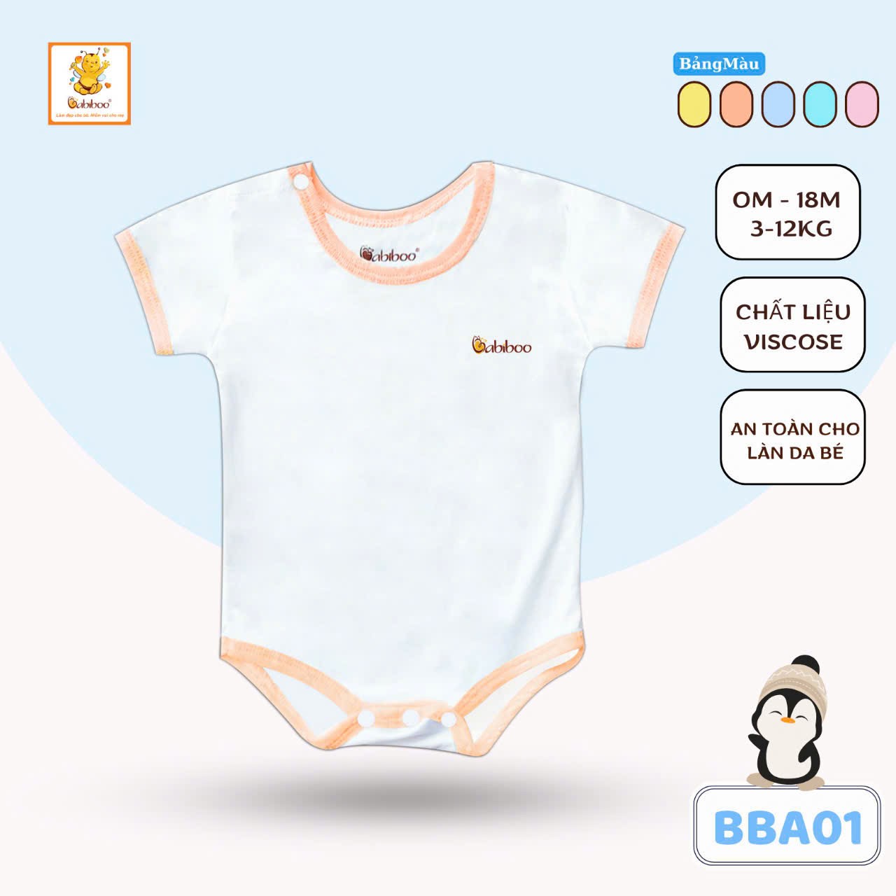 THÔNG TIN SẢN PHẨM: - Chất liệu làm từ vải bamboo mát mềm mịn khả năng hút ẩm cao, thấm hút mồ hôi tốt. - Body sơ sinh với thiết kế tay ngắn mang lại