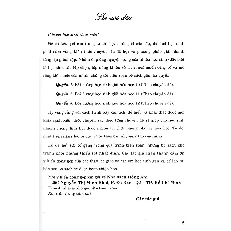 Mua tại TiktokBồi Dưỡng Học Sinh Giỏi Hóa Học 10 Theo Chuyên Đề Hiện nay việc dạy và học hoá học ở trường trung học cơ sở cần được đổi mới nhằm góp phần thực hiện tốt mục tiêu của nhà trường phổ thông trung học cơ sở. Một trong những nhiệm vụ ưu tiên là cần coi trọng việc hình thành và phát triển tiềm lực trí tuệ cho học sinh. Cần bồi dưỡng và tạo điều kiện cho học sinh được rèn luyện năng lực tư duy độc lập sáng tạo, có ý thức và biết vận dụng tổng hợp kiến thức đã học vào cuộc sống thực tiễn. Để đáp ứng yêu cầu đó Nhà xuất bản Đại học quốc gia Hà Nội cho xuất bản bộ sách “Bồi dưởng học sinh giỏi hóa học 10”; “Bồi dưởng học sinh giỏi hóa học 11”; “Bồi dưởng học sinh giỏi hóa học 12”.