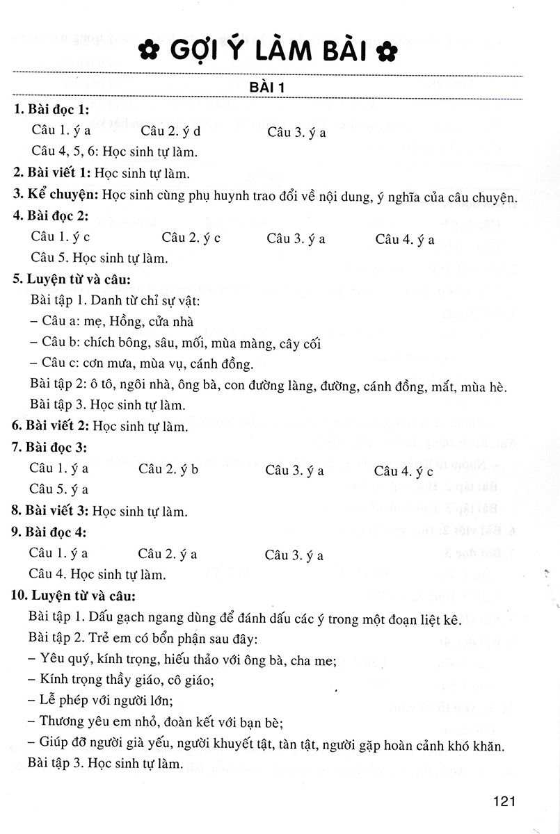 - Bồi dưỡng tình yêu tiếng Việt, hình thành thói quen giữ gìn sự trong sáng và giàu đẹp của Tiếng Việt, góp phần hình thành nhân cách con người Việt Nam hiện đại. Các bài tập giúp em ôn luyện Gợi ý làm bài cho mỗi tuần Ngoài ra, cuốn sách còn cung cấp thêm một số dàn bài, những bài văn mẫu và những câu chuyện kể trong và ngoài nước nhằm cung cấp thêm nguồn tư liệu để các em tham khảo và vận dụng vào các bài học