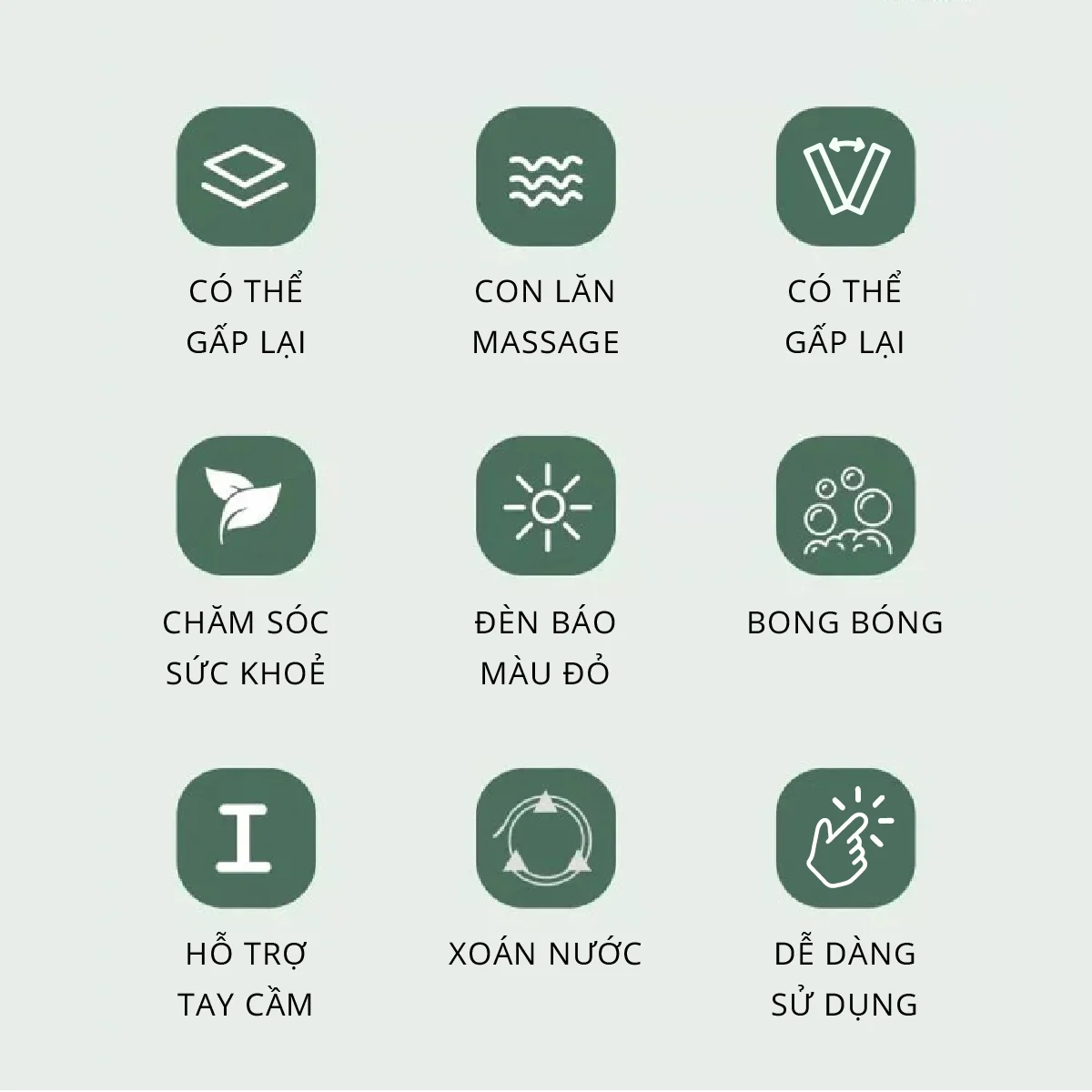 - Xông hơi bằng công nghệ siêu âm - Kiểm soát mức nhiệt hơi tự động với 3 chế độ cài đặt - Massage con lăn kích thích các điểm huyệt dưới gan bàn chân