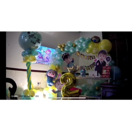 Gồm: - 1 bộ bong bóng chữ happy birthday - 1 bong bóng hình trâu vàng size lớn - 10 bong bóng siêu nhũ - 2 bong bóng hình ngôi sao 45cm - 3 bong