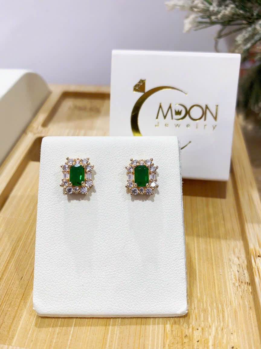✨Bông Tai Bạc Ý Đính Emerald Tổng Hợp