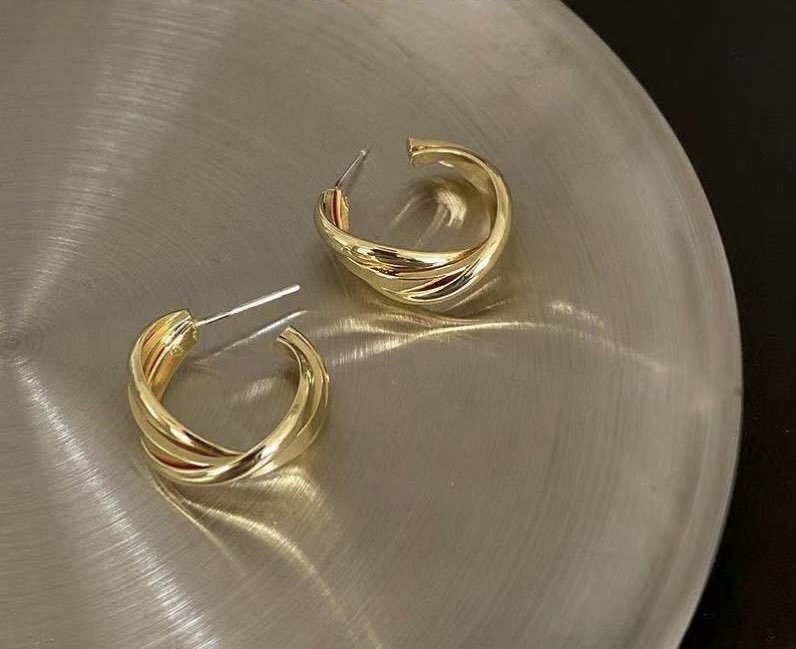 ✨Bông tai nữ dáng cuộn tròn màu vàng nhiều vòng