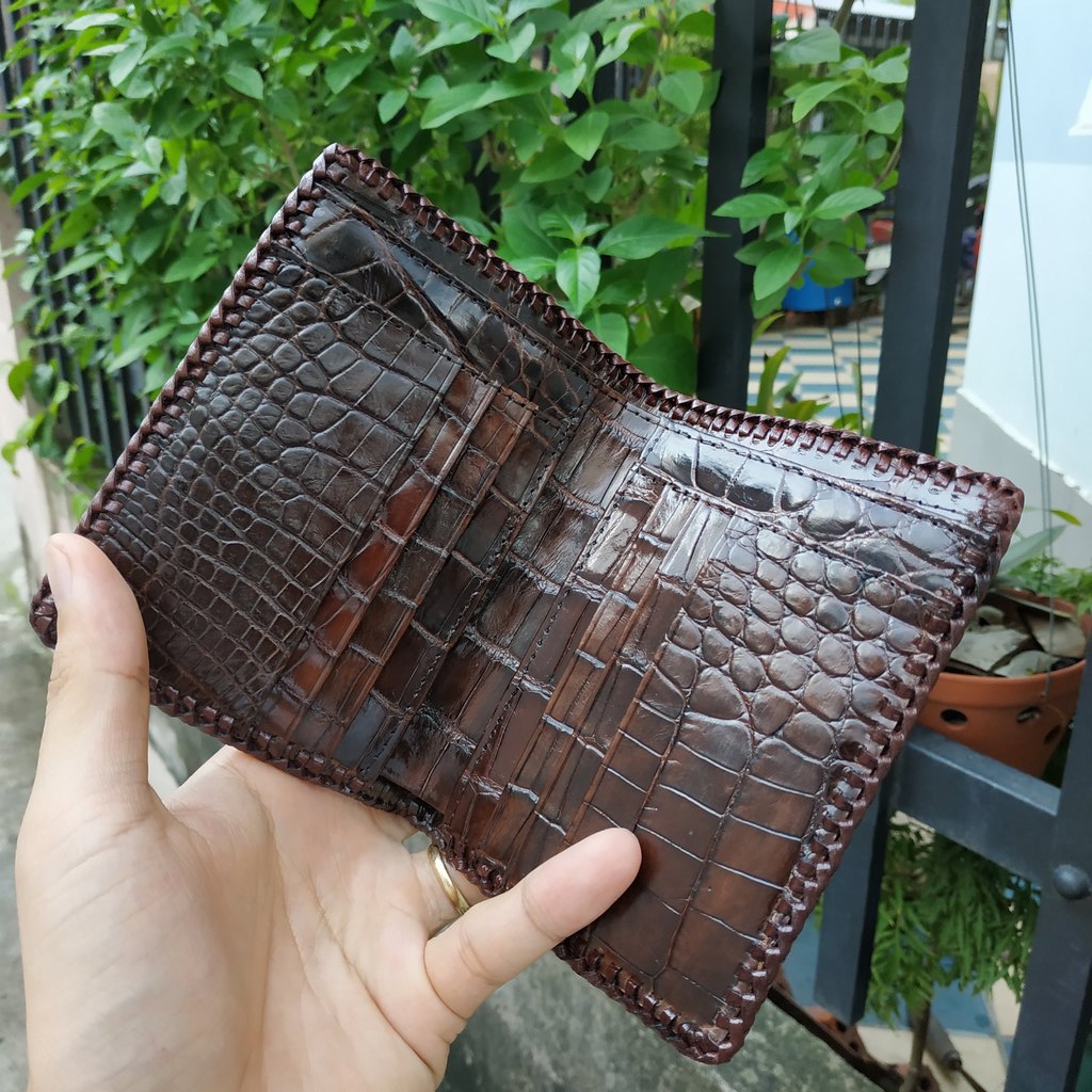 Ví Da Cá Sấu Thái Lan 2 Mặt Đan Viền Thủ Công #vidacasau #vida #bopdacasau