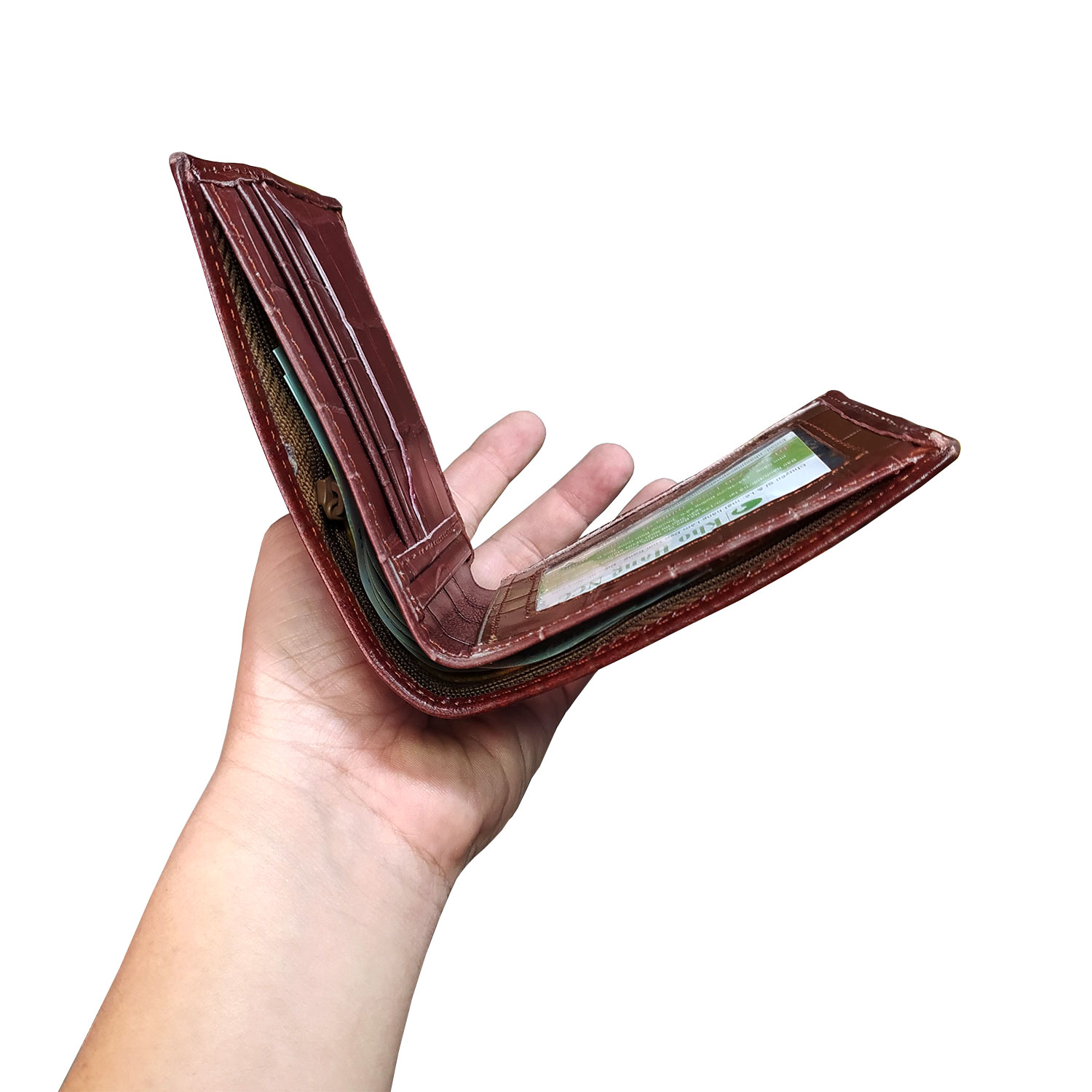 - Ví nam được làm bằng chất liệu da cá sấu cao cấp tạo kiểu dáng lạ mắt, sang trọng. - Thiết kế nhỏ gọn, thời trang, dạng ví nam xếp đôi, có nhiều ngăn