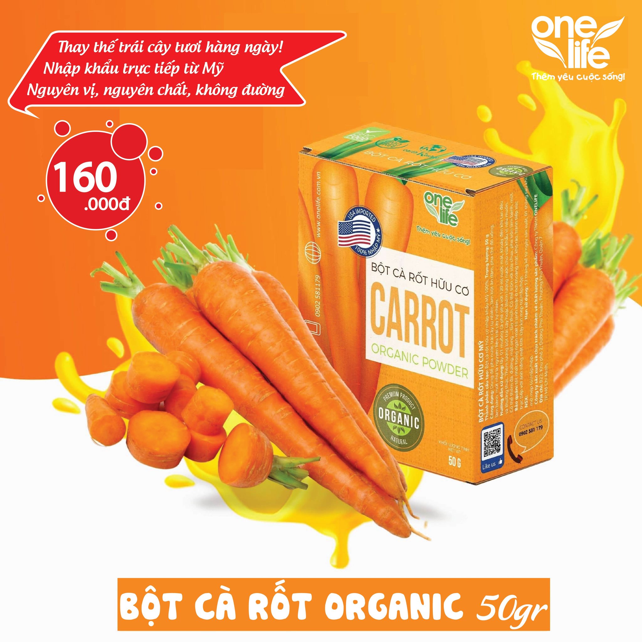 ✨Bột Cà Rốt Hữu Cơ Mỹ OneLife (Hộp 50gr)