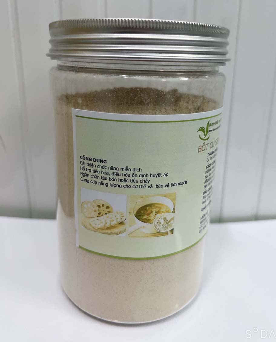 Bột Củ Sen rất tốt cho sức khỏe, nó mọc dưới bùn sâu, hấp thụ chất dinh dưỡng của đất và nước rồi chuyển hóa năng lượng thành tinh bột. Đây là một nguồn cung cấp năng lượng sạch cho cơ thể, giúp cải thiện chức năng miễn dịch, kiểm soát thần kinh, hỗ trợ tiêu hóa, điều hòa huyết áp, thiếu máu do rong kinh. Tinh Bột củ sen không những có vị thanh mát, lại mềm mịn, không những tuyệt vời giúp khai vị mà còn chứa nhiều vi chất như sắt, canxi, kali và protein thực vật. Nó được sử dụng nhiều cho người bệnh đặc biệt tốt cho người tiểu ít, ngươi phẫu thuật thận xong. Ngoài ra, nó còn tác dụng tốt cho trừ ho, bổ phổi và làm đẹp. Bột củ sen – Bột củ sen dùng để làm đẹp, giúp trẻ hóa làn da, ngăn lão hóa vì nó có chứa 1 loại enzyme đặc biệt có tên L-isoaspartyl methyltran sfercese. Enzyme này giúp tái tạo protein trong cơ thể con người bị tổn thương và cuối cùng làm cho làn da luôn trẻ trung. – Ngoài ra, bột củ sen còn có tác dụng ngăn ngừa viêm nhiễm   HƯỚNG DẪN SỬ DỤNG: Món ăn: Khuấy đều bột củ sen với nước nguội cho bột tan, sau đó thêm nước nóng vào cho bột sánh lại. Nếu muốn thơm có thể cho thêm chút bột hoa quế.   Ngăn ngừa ho cảm lạnh: Đun bột củ sen với 100cc nước, thêm chút muối biển và vài giọt tinh dầu gừng, đun nhỏ lửa, bắt đầu sôi thì tắt bếp. Phương pháp  ăn kiêng: