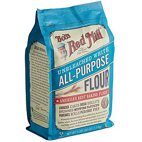 Bột mì đa dụng không tẩy Bob's Red Mill 2.27kg là một loại cao cấp được xay tươi từ lúa mì đỏ cứng chất lượng cao nhất Bắc Mỹ, không tẩy trắng, không thêm bromate.