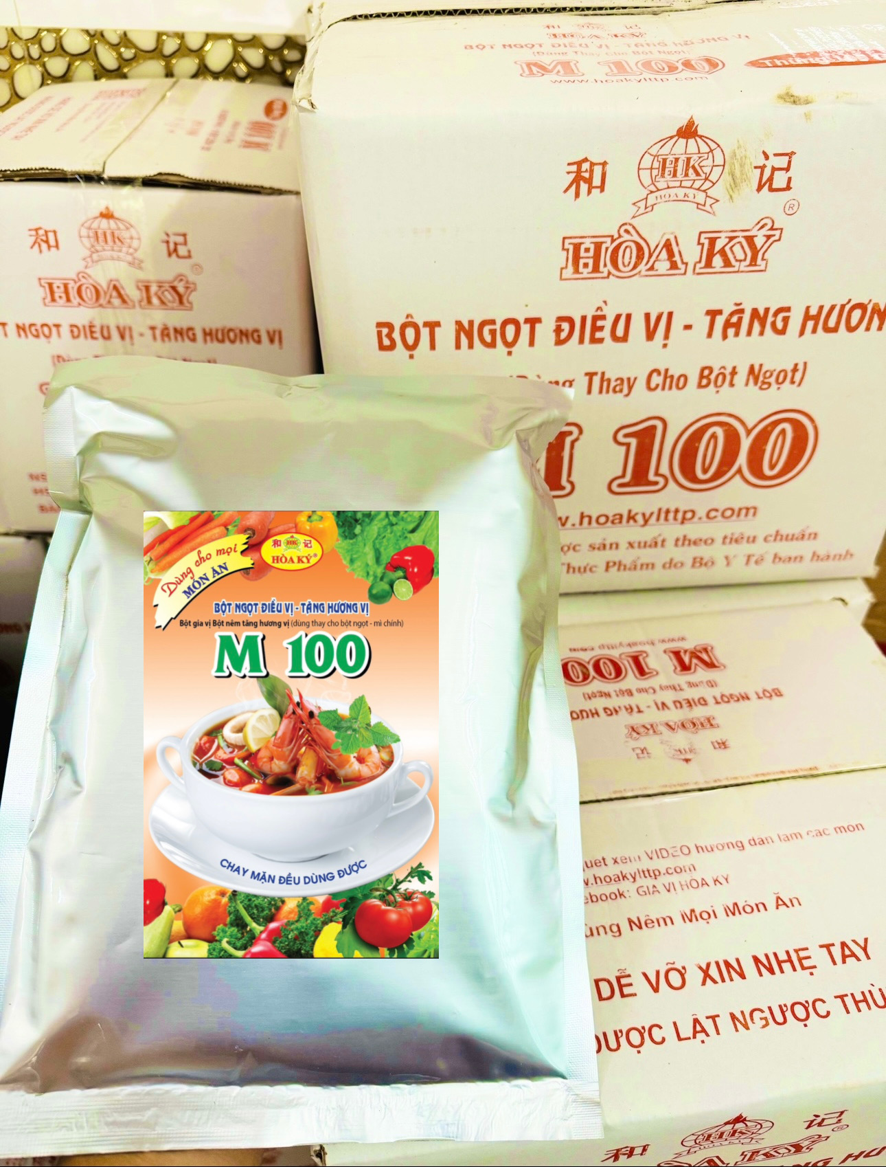 Bột ngọt điều vị tăng hương vị M100 là sản phẩm tiên tiến thế hệ mới dùng thay thế cho bột ngọt. Dùng M 100 các bạn sẽ được những lợi ích sau: Tính tăng
