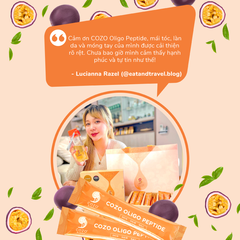 COZO Oligo Peptide là một công thức dinh dưỡng hoàn chỉnh với các chất giúp phục hồi mà da đang cần. Sản phẩm giúp cải thiện khả năng miễn dịch, chống lão hóa và oxy hóa cải thiện chất lượng giấc ngủ, thị lực, ngăn ngừa các vấn đề sức khỏe và duy trì thể chất và tình trạng da, móng, tóc của bạn.