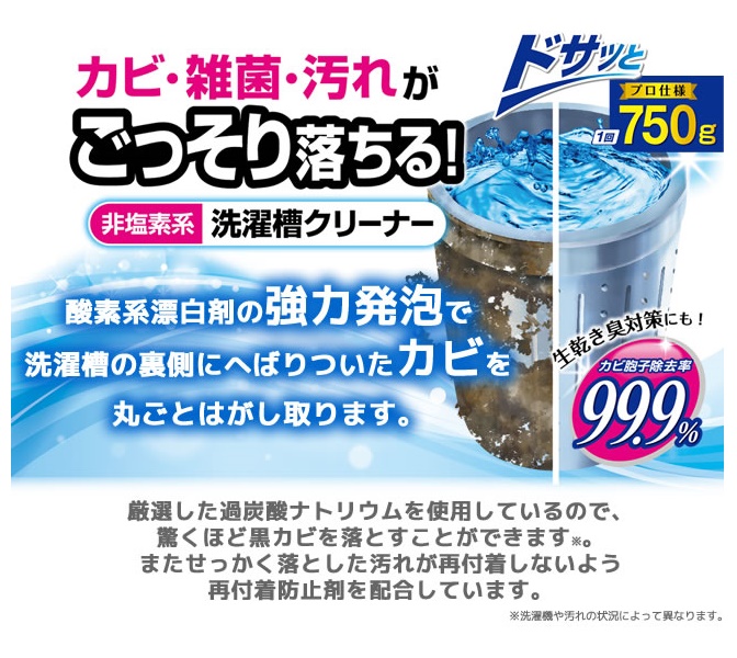 Bột tẩy rửa, khử khuẩn lồng máy giặt sinh học cực mạnh , không chứa Clo 750gr - Nội địa Nhật Bản: * Thành phần: Kiềm, chất tẩy trắng, chất hoạt động bề mặt, *