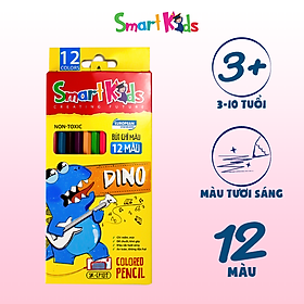 ✨Bút chì màu Smartkids SK-CP102 Dino 12 màu,dành cho bé 6 tuổi - 12 tuổi, thân chì chắc chắn,dễ chuốt