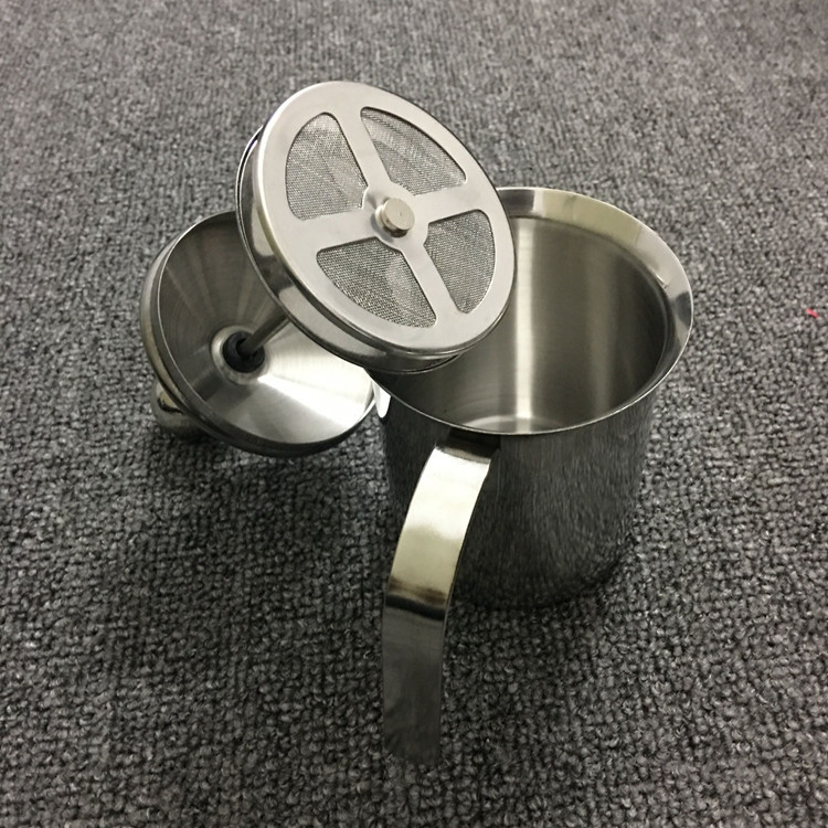 B3: đậy nắp bình lại, sau đó dùng hai tay kết hợp một tay giữ và một tay kéo lưới lọc lên xuống cho đến khi tạo ra bọt sữa vừa ý thì dừng lại.