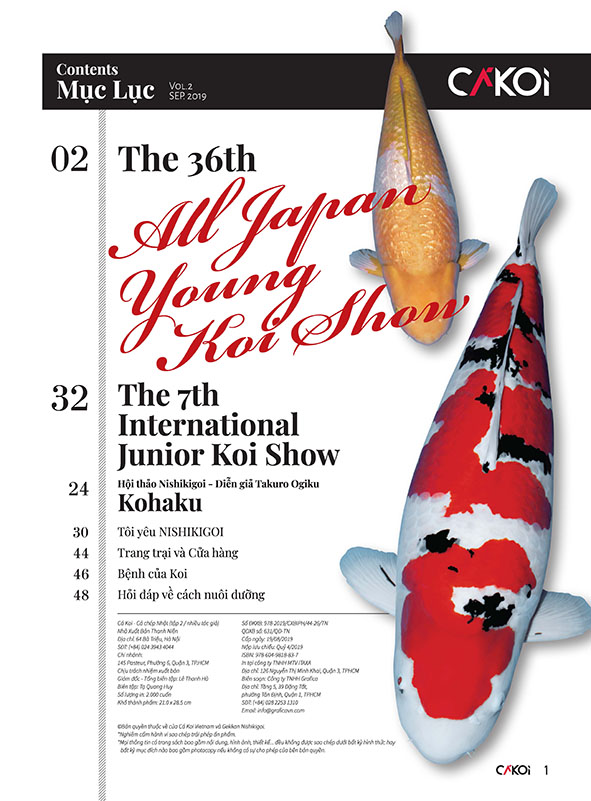 “CÁ KOI” là phiên bản tiếng Việt của Gekkan Nishikigoi (Koi Magazine do Shinkokai Nhật Bản phát hành), được phát hành định kỳ 3 tháng tại Việt Nam. Có trong tay quyển “CÁ KOI” nghĩa là có trong tay những thông tin mới, chuẩn xác và chính thống nhất về Koi nói chung, ngành Koi tại Nhật Bản và Việt Nam nói riêng.