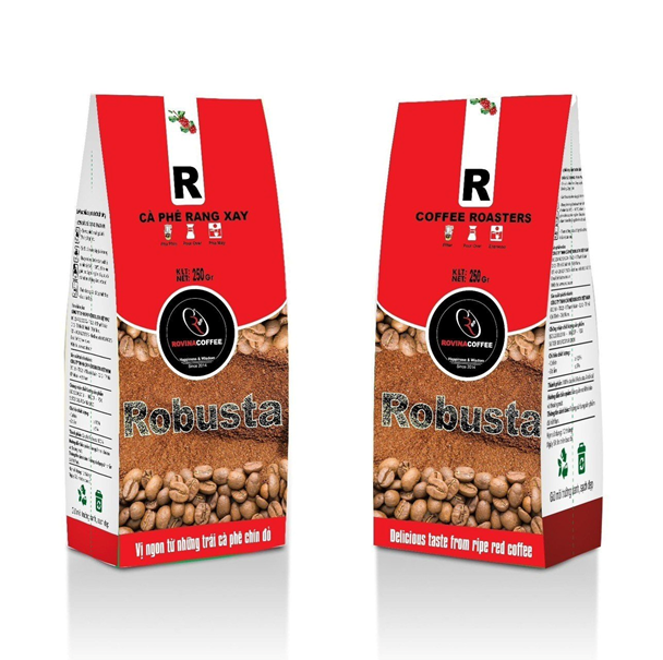 Thông Tin Sản Phẩm: Thương Hiệu: ROVINA Xuất Xứ: Việt Nam Đơn vị tính: Gói Trọng lượng tịnh: 250gr Hạn sử dụng:1 năm Độ ẩm: ≤ 5 % Hàm lượng caffein:>1,5% MÔ TẢ SẢN PHẨM ROBUSTA hay Cà phê vối chứa hàm lượng caffein cao hơn và có hương vị không tinh khiết bằng cà phê chè, do vậy mà được đánh giá thấp hơn. Giá một bao cà phê vối thường chỉ bằng một nửa so với cà phê chè. Hiện nay gần 90% diện tích cà phê ở Việt Nam được trồng cà phê vối, 10% trồng cà phê chè, khoảng 1% còn lại được trồng cà phê mít (Coffea excelsa). Cà phê Robusta Cây cà phê vối có dạng cây gỗ hoặc cây bụi, chiều cao của cây trưởng thành có thể lên tới 10m. Quả cà phê có hình tròn, hạt nhỏ hơn hạt cà phê chè (tức cà phê arabica). Hàm lượng caffein trong hạt cà phê vối khoảng 2-4%, trong khi ở cà phê chè chỉ khoảng 1-2%. Giống như cà phê chè, cây cà phê vối 3-4 tuổi có thể bắt đầu thu hoạch. Cây cho hạt trong khoảng từ 20 đến 30 năm. Cà phê vối ưa sống ở vùng nhiệt đới, độ cao thích hợp để trồng cây là dưới 1000 m. Nhiệt độ ưa thích của cây khoảng 24-29°C, lượng mưa khoảng trên 1.000 mm. Cây cà phê vối cần nhiều ánh sáng mặt trời hơn so với cây cà phê chè Đặc tính: + Thể chất mạnh + Vị cân bằng – Hướng dẫn sử dụng: Xay cà phê trước khi pha chế, sản phẩm phù hợp tất cả các kiểu pha, Cà phê hạt xay Robusta khi pha có màu đen nhạt, Mùi thơm nhẹ, vị êm và hơi đắng