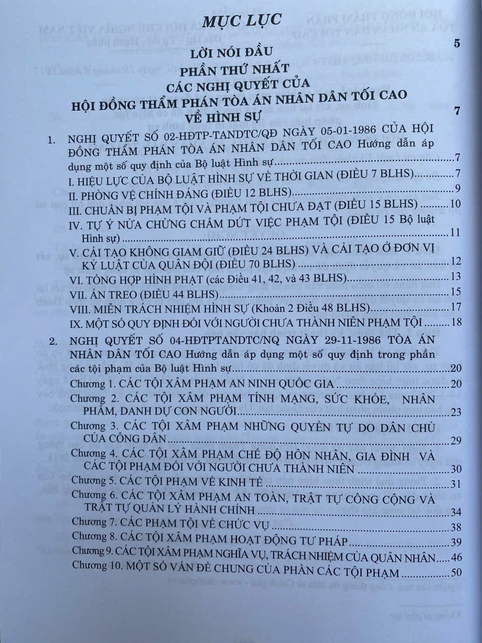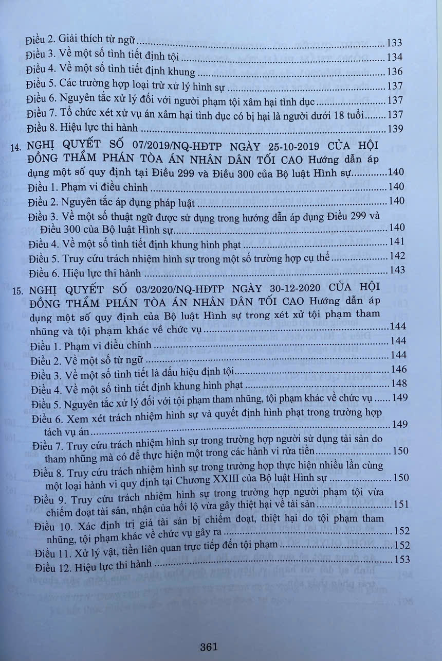 Phần thứ nhất. Hệ thống các Nghị quyết của Hội đồng Thẩm phán Tòa án nhân dân tối cao về hình sự.