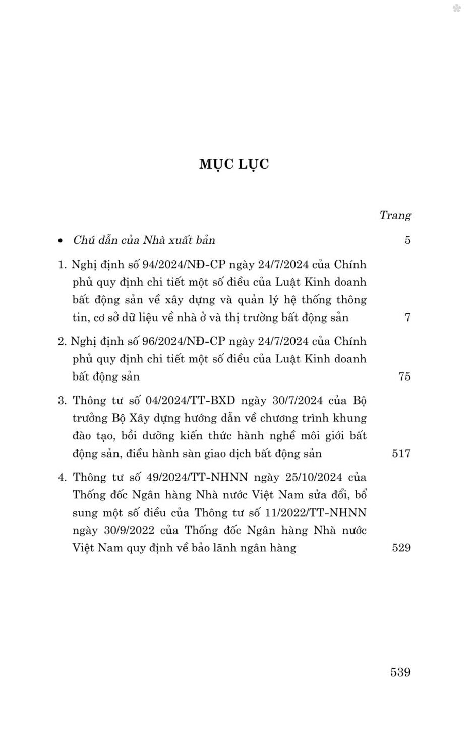 Nhằm giúp bạn đọc trong việc tìm hiểu và thực hiện pháp luật về kinh doanh bất động sản, Nhà xuất bản Chính trị quốc gia Sự thật xuất bản cuốn sách Các văn bản hướng dẫn thi hành Luật Kinh doanh bất động sản năm 2023 (sửa đổi, bổ sung năm 2024).