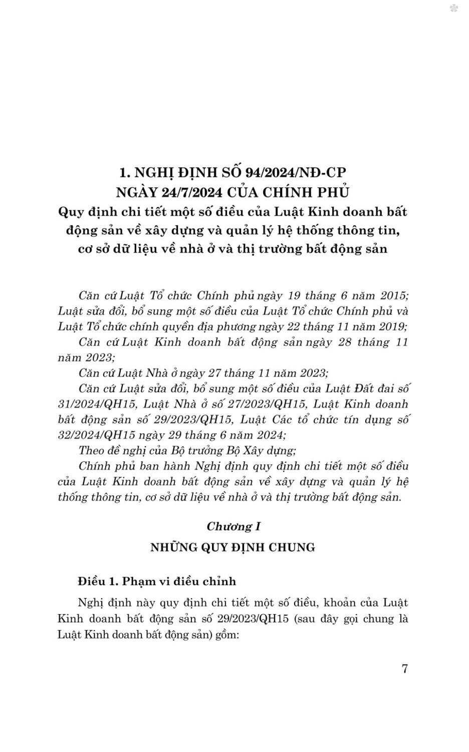 Để kịp thời giải quyết được các vấn đề lớn về kinh doanh bất động sản, đáp ứng yêu cầu của người dân, góp phần phát huy nguồn lực từ bất động sản, quản lý, vận hành hiệu quả thị trường bất động sản trong giai đoạn mới, sau khi Luật Kinh doanh bất động sản năm 2023 (sửa đổi, bổ sung năm 2024) được ban hành, Chính phủ, các bộ đã ban hành các văn bản quy định chi tiết và hướng dẫn thi hành Luật như: Nghị định số 94/2024/NĐ-CP ngày 24/7/2024 của Chính phủ Quy định chi tiết một số điều của Luật Kinh doanh bất động sản về xây dựng và quản lý hệ thống thông tin, cơ sở dữ liệu về nhà ở và thị trường bất động sản; Nghị định số 96/2024/NĐ-CP ngày 24/7/2024 của Chính phủ Quy định chi tiết một số điều của 5 Luật Kinh doanh bất động sản; Thông tư số 04/2024/TT-BXD ngày 30/7/2024 của Bộ Xây dựng Hướng dẫn về chương trình khung đào tạo, bồi dưỡng kiến thức hành nghề môi giới bất động sản, điều hành sàn giao dịch bất động sản; Thông tư số 49/2024/TT-NHNN ngày 25/10/2024 của Ngân hàng Nhà nước Việt Nam Sửa đổi, bổ sung một số điều của Thông tư số 11/2022/TT-NHNN ngày 30/9/2022 của Thống đốc Ngân hàng Nhà nước Việt Nam quy định về bảo lãnh ngân hàng.