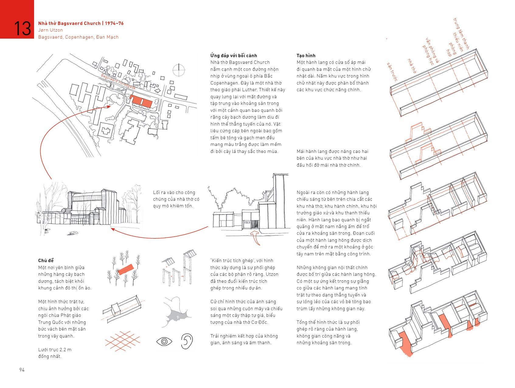 Qua hơn năm mươi công trình kiến trúc tiêu biểu, được thiết kế bởi những bậc thầy của kiến trúc hiện đại và được trình bày trong từng chương của cuốn sách này, chúng tôi luôn cảm nhận được sự kêu gọi khám phá mối quan hệ giữa lý thuyết và thực hành trong kiến trúc. Trong việc dịch giải những yếu tố hình thức và nền tảng lý thuyết của các công trình biểu tượng này, chúng tôi mong muốn đóng góp một phần vào nỗ lực thu hẹp khoảng cách giữa thực tiễn và nguyên tắc, đem câu chuyện kiến trúc mang tính toàn cầu vào một bối cảnh dễ tiếp cận, hấp dẫn và truyền cảm hứng hơn cho độc giả Việt Nam, đặc biệt là các bạn sinh viên và các kiến trúc sư trẻ.