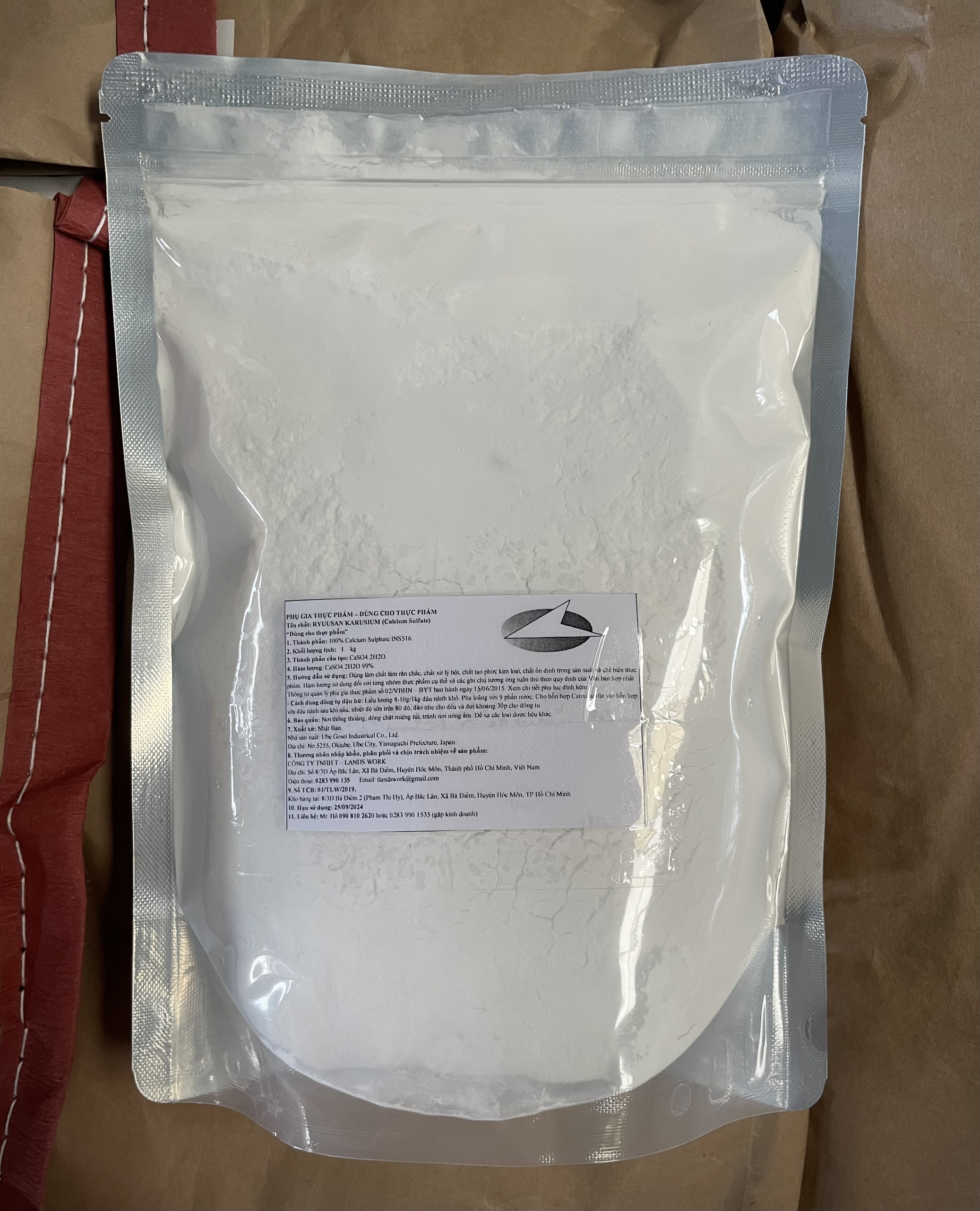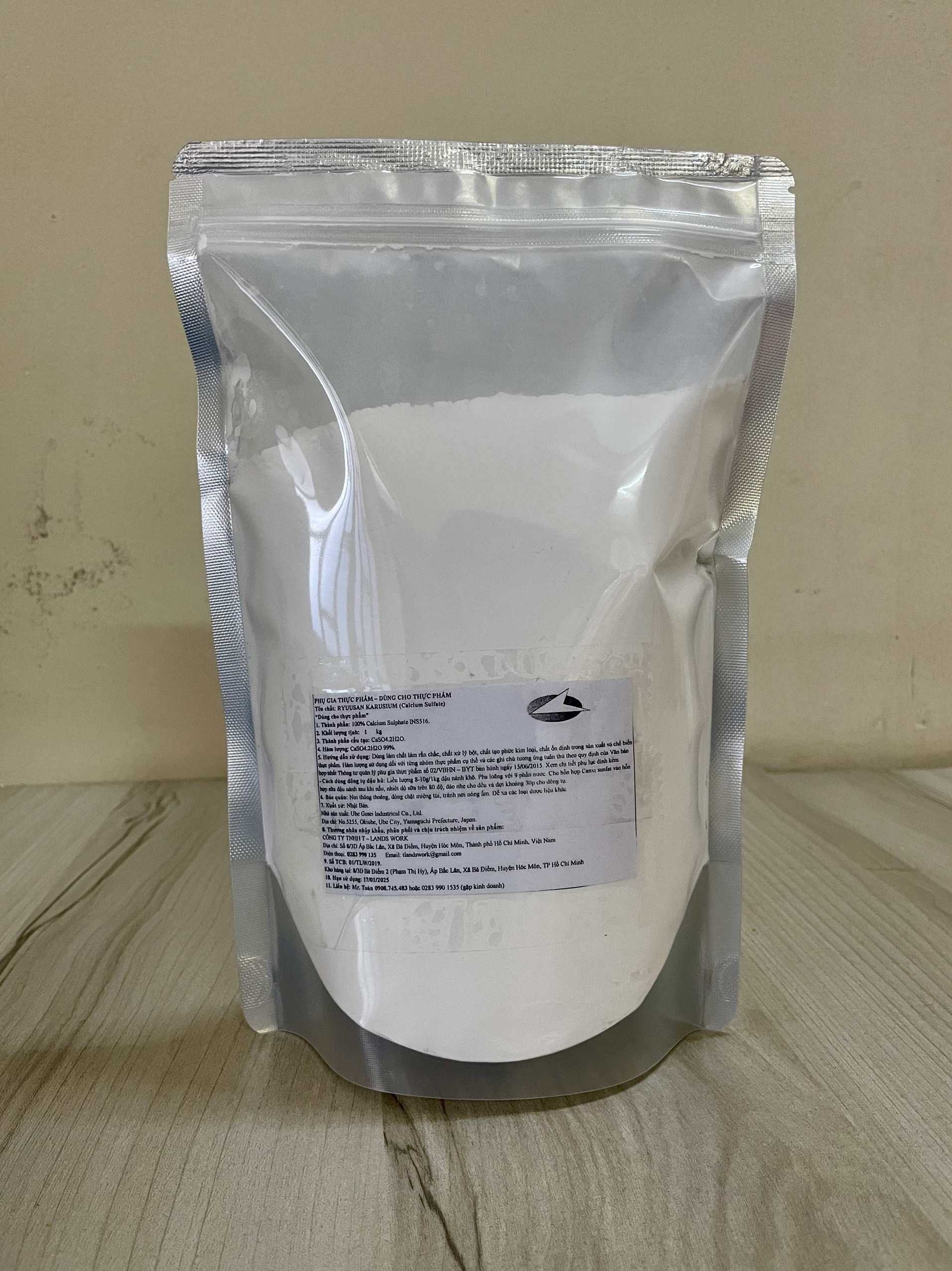 • Phụ gia thực phẩm RYUUSAN KARUSIUM (Calcium sulfate): dùng làm chất ổn định màu, chất làm rắn chắc, chất ổn định trong sản xuất và chế biến thực phẩm.
