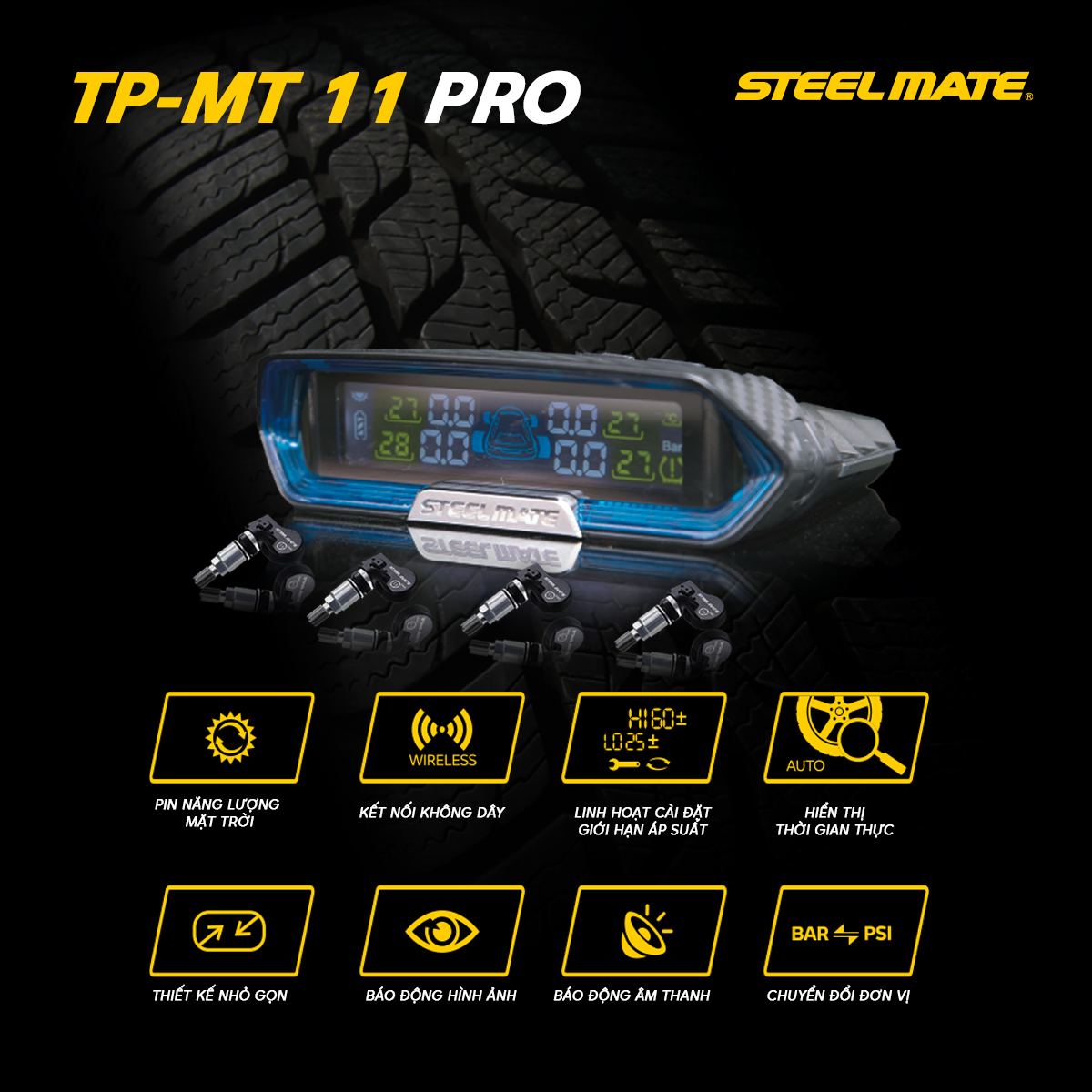 Cảm biến áp suất lốp năng lượng mặt trời TP-MT11 STEELMATE  là một trong những giải pháp an toàn cho ô tô hàng đầu hiện nay. TP-MT11 cung cấp khả năng nhận biết mức độ