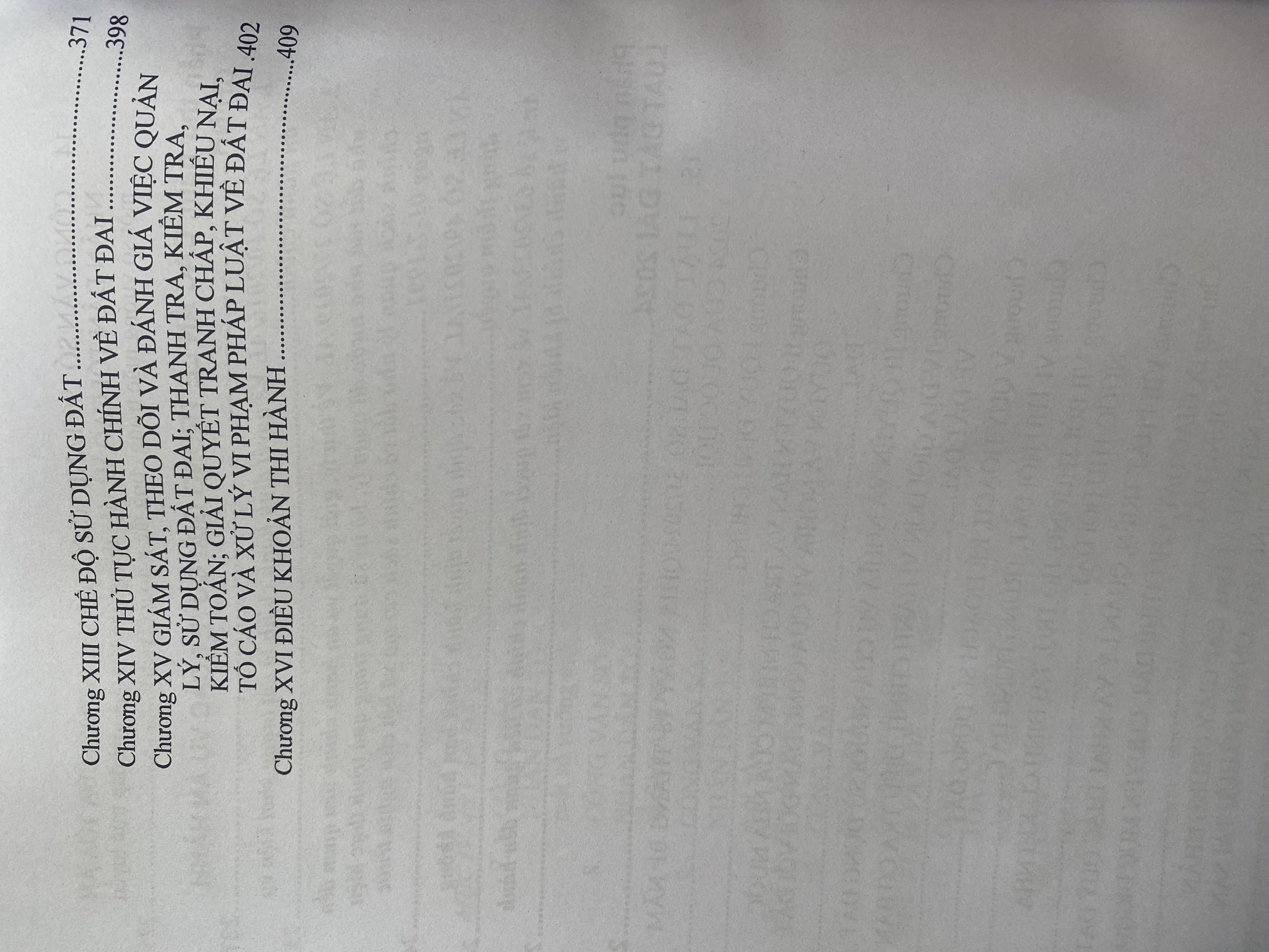 Luật Đất đai số 31/2024/QH15 được Quốc hội khóa XV thông qua ngày 18/01/2024. Luật Đất đai năm 2024 gồm 16 chương, 260 điều, trong đó sửa đổi, bổ sung 180 điều của Luật