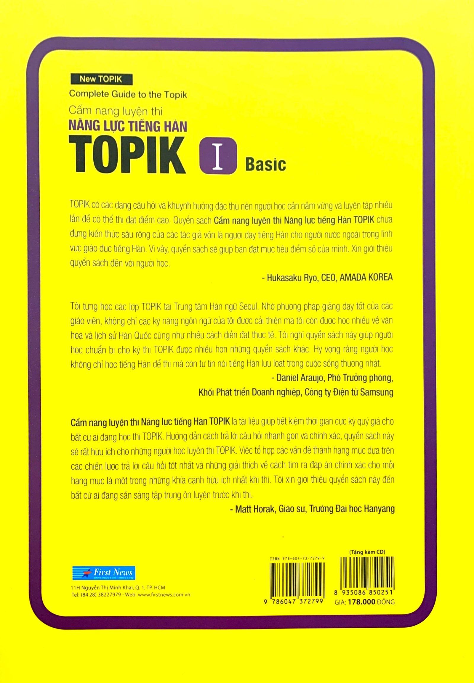 Cẩm Nang Luyện Thi Năng Lực Tiếng Hàn Topik I Basic Cẩm nang Cẩm Nang Luyện Thi Năng Lực Tiếng Hàn Topik được biên soạn dành cho người học chuẩn bị tham dự Kỳ thi Năng