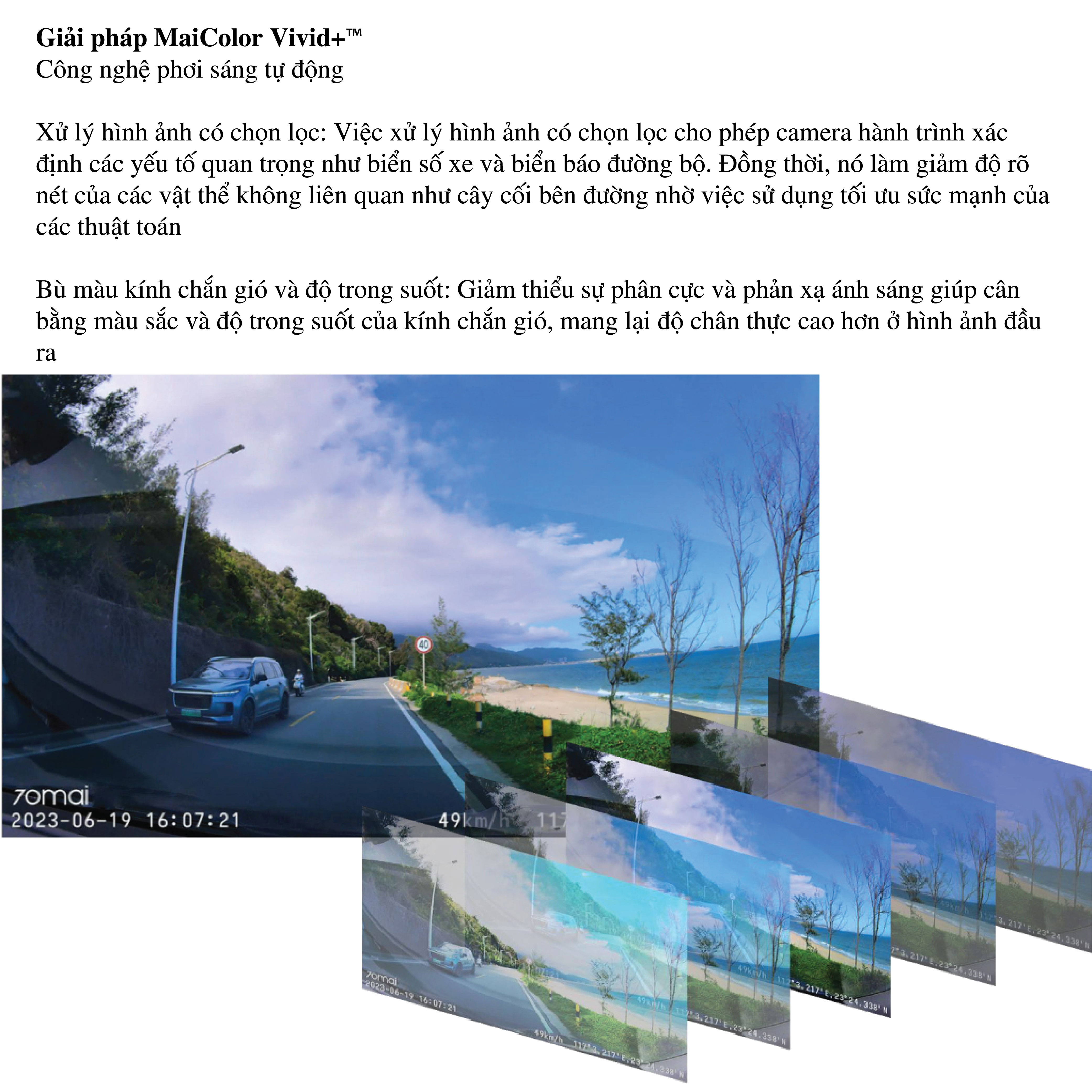 Sử dụng công nghệ hình ảnh độc quyền MaiColor Vivid+ Solution và 70mai Night Owl Vision
