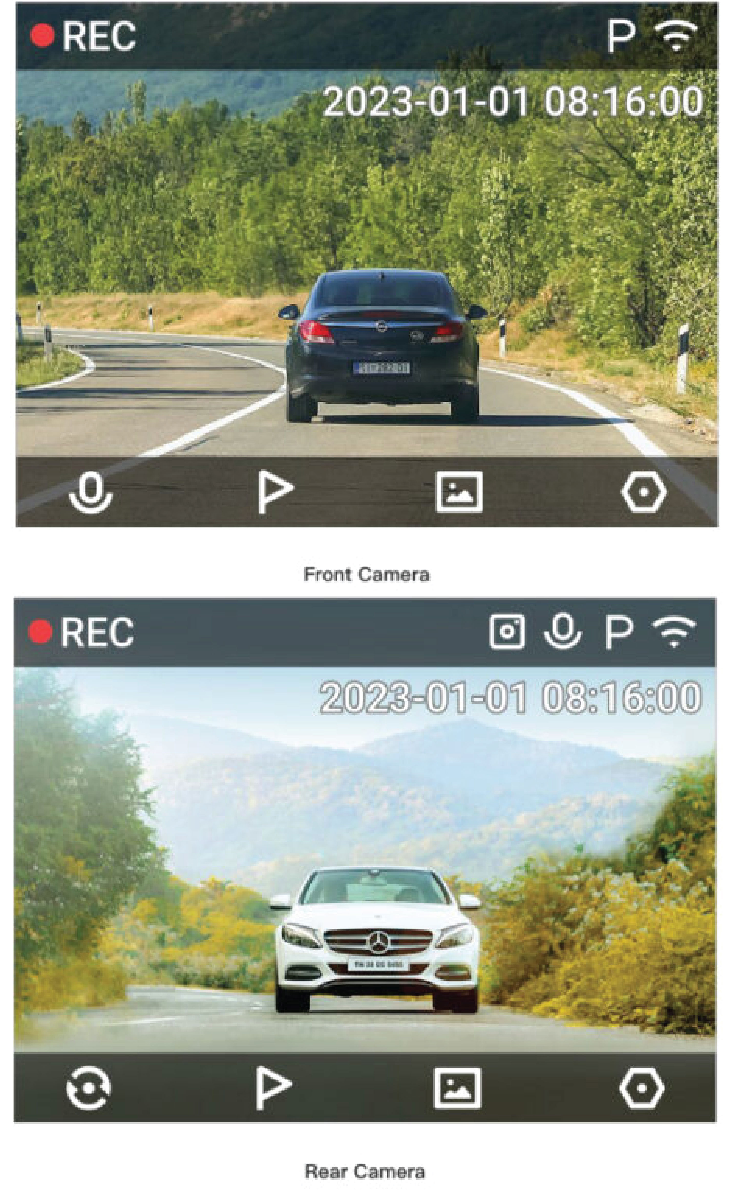 Chế độ ghi hình kép mang lại phạm vị phủ sóng toàn diện cho cả phía trước và phía sau, cung cấp khả năng bảo vệ kép và bằng chứng trực quan thuyết phục