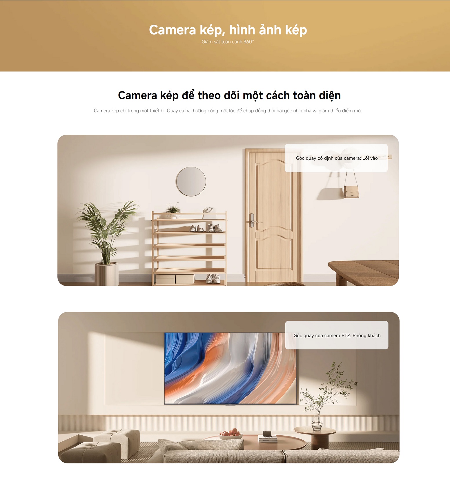 - Độ phân giải Full HD 1080p – mang đến hình ảnh rõ nét, chi tiết chân thực - Xoay 360° ngang, 114° dọc – dễ dàng quan sát toàn cảnh, không góc khuất -