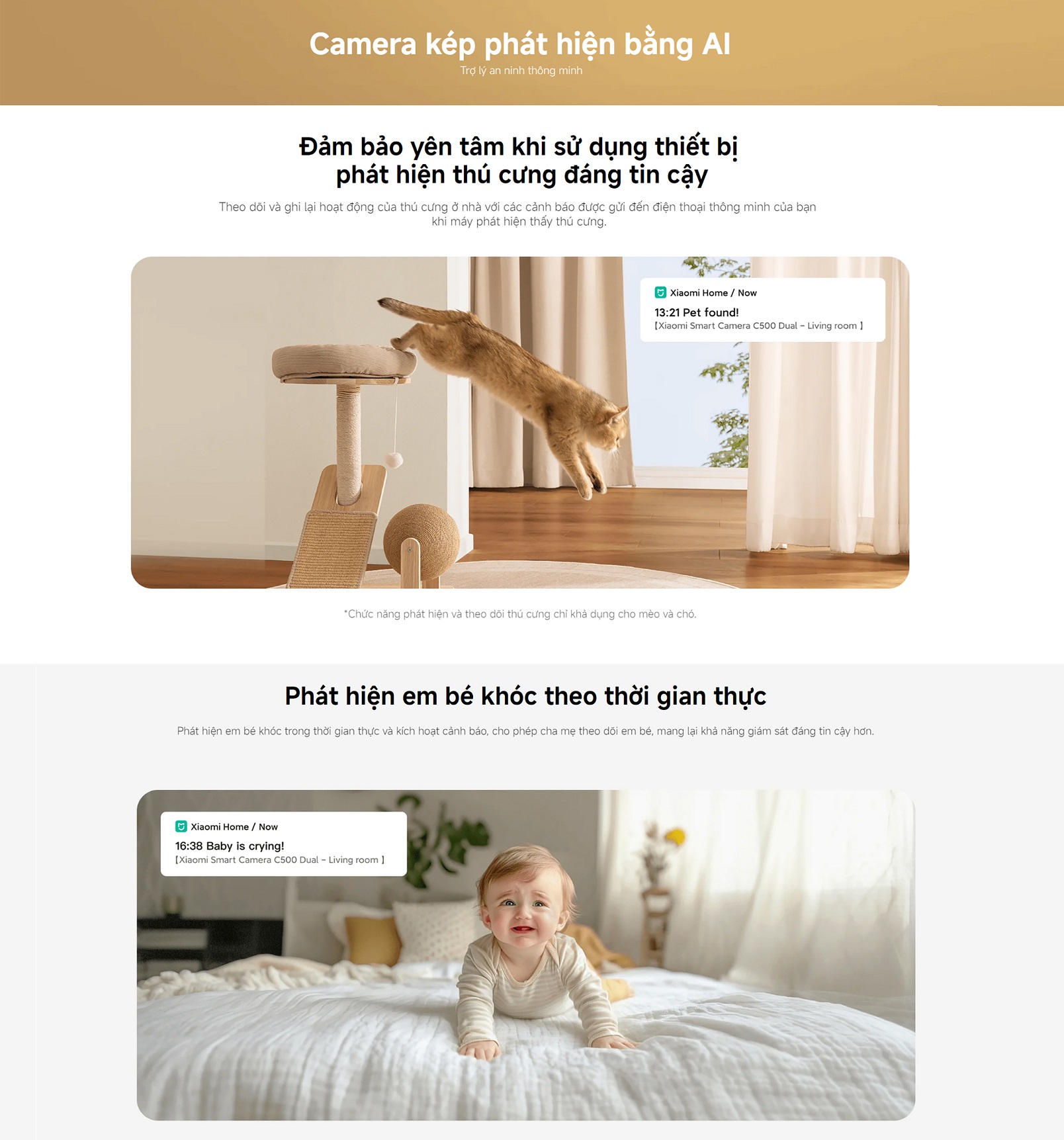 ✨Camera Kép Xiaomi Smart Camera C500 Dual EU - Nhận Diện Thú Cưng - Phát Hiện Tiếng Khóc Em Bé - Hàng Chính Hãng