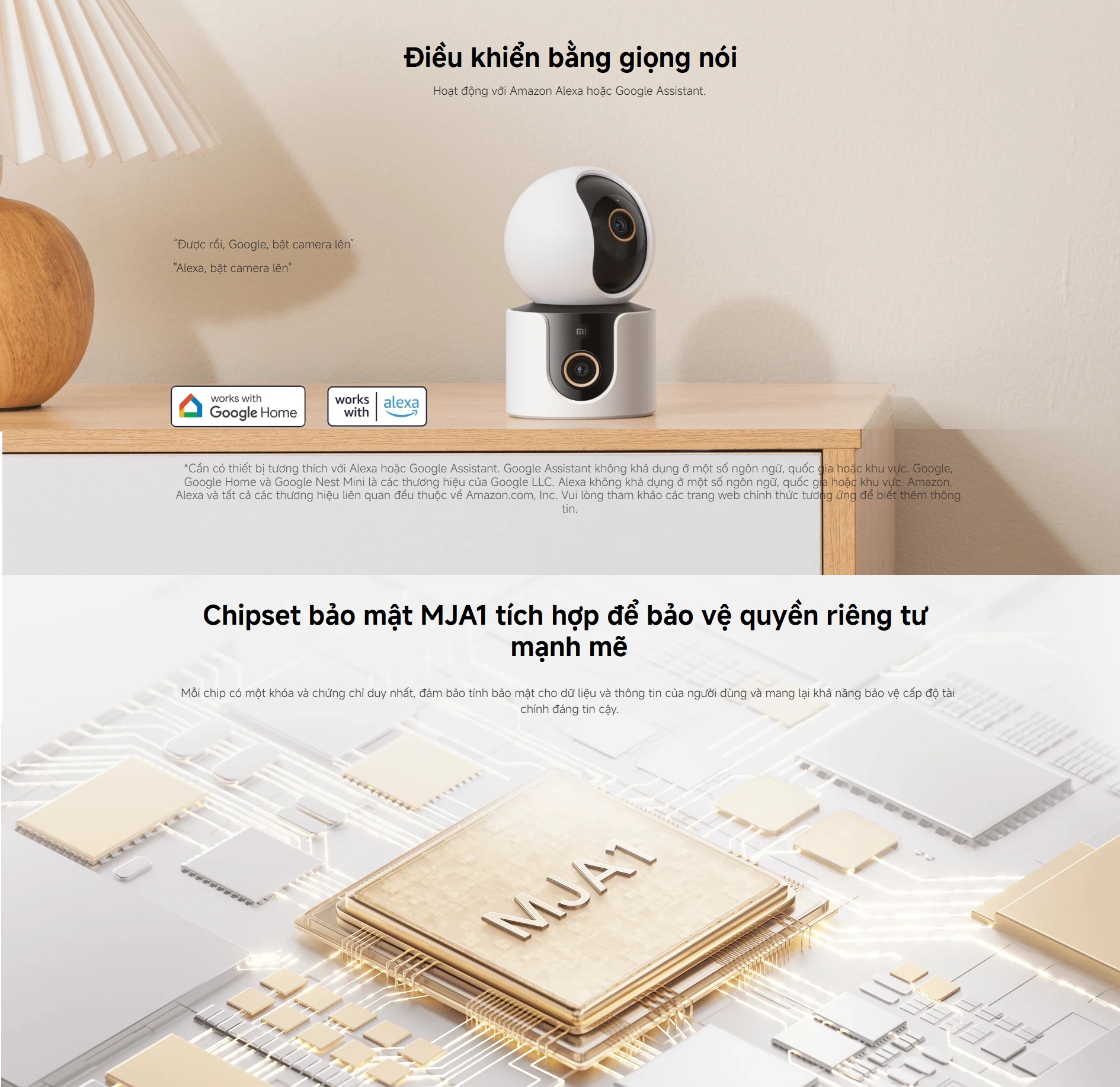 - Độ phân giải 3MP (2K – 2304×1296) cho hình ảnh chi tiết, sắc nét hơn Full HD - Góc quay linh hoạt 360° ngang, điều chỉnh dọc rộng – bao quát toàn bộ không gian - Phát hiện chuyển động thông minh, theo dõi tự động và cảnh báo tức thì - Tầm nhìn ban đêm bằng hồng ngoại lên tới 12 m – quan sát rõ cả trong bóng tối - Âm thanh hai chiều – vừa nghe vừa nói trực tiếp qua camera - Lưu trữ linh hoạt qua thẻ microSD lên tới 512 GB hoặc dịch vụ đám mây - Hỗ trợ điều khiển bằng giọng nói qua Alexa và Google Assistant - Kết nối Wi-Fi 2.4 GHz ổn định, dễ cài đặt và sử dụng - Thiết kế nhỏ gọn, phù hợp đặt bàn hoặc treo tường LƯU Ý KHI MUA HÀNG Cảm ơn quý khách đã quan tâm đến sản phẩm bên