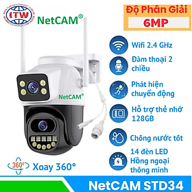 Camera ngoài trời NetCAM STD34 được thiết kế gồm 1 ống kính góc rộng phía trên và 1 ống kính quay quét phía dưới với độ phân giải 6.0MP, 2 ống kính này vừa hoạt động độc lập lại vừa có thể hoạt động liên kết nhau theo cách thông minh hơn nhiều so với camera thông thường.