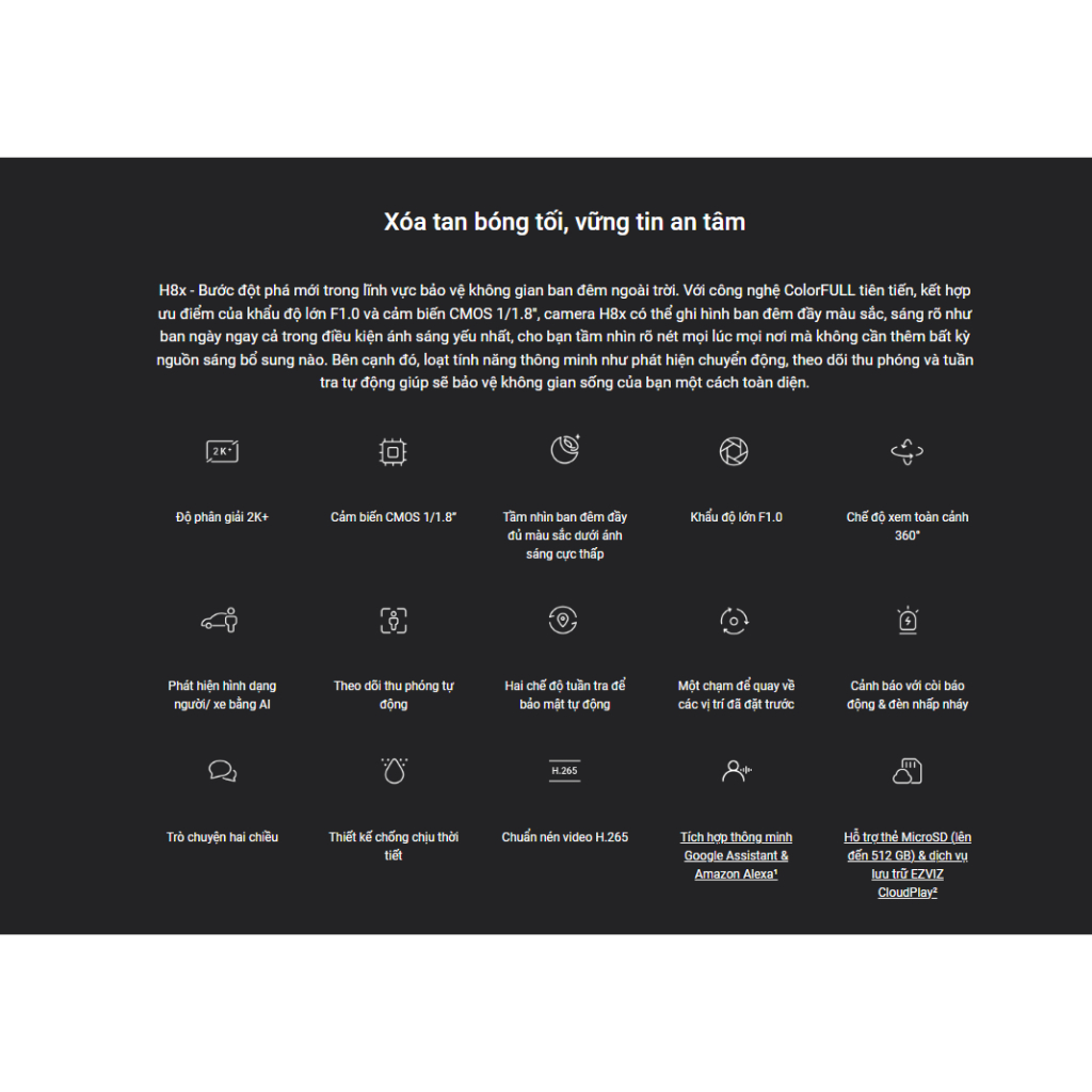– Điều khiển dễ dàng qua ứng dụng Ezviz trên điện thoại.