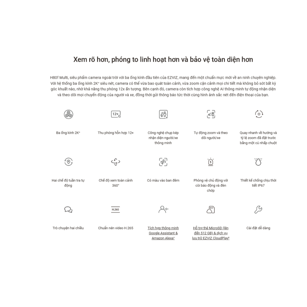– Zoom 12x cung cấp khả năng giám sát trực tiếp 4MP với 3 camera với tiêu cự khác nhau 2,8mm,6mm và 12mm