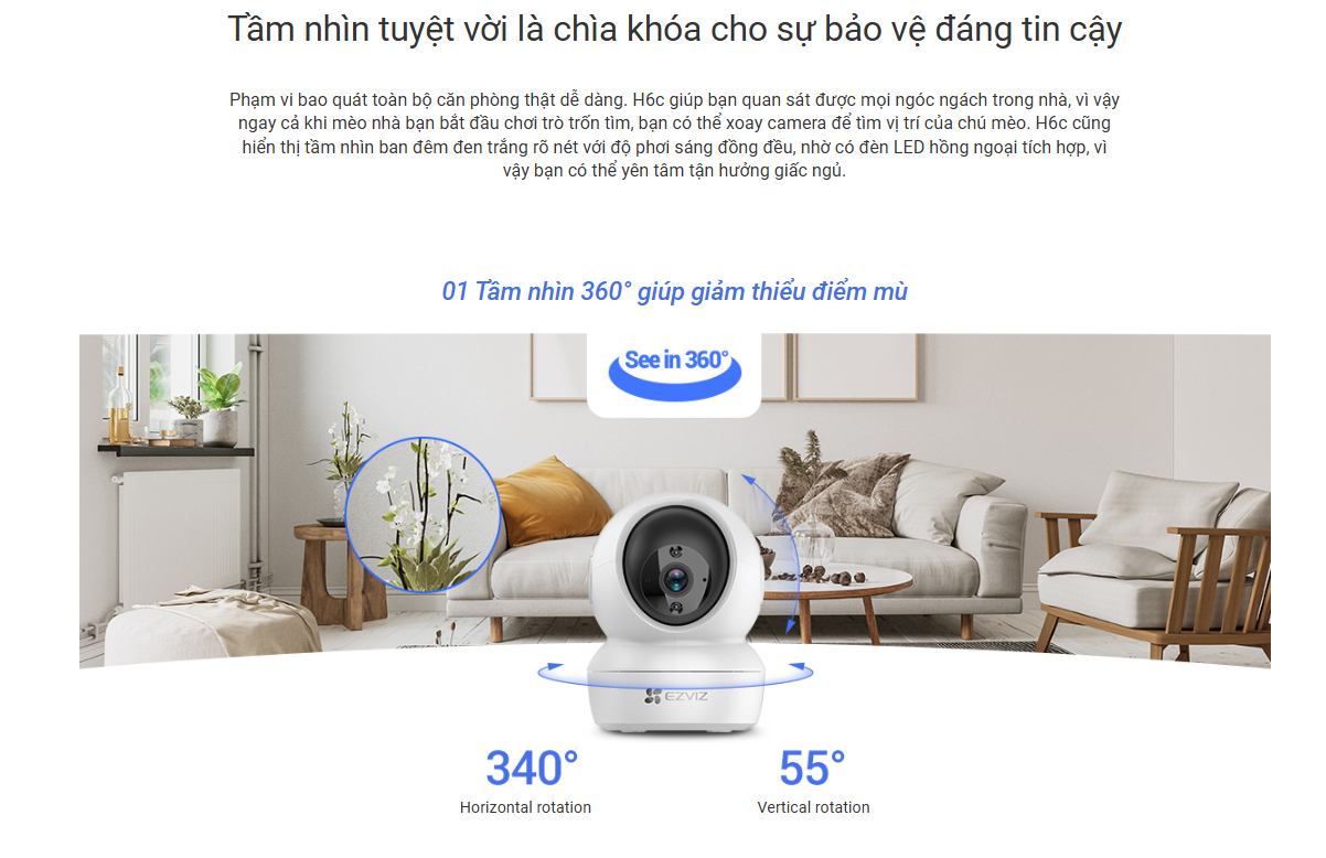 - Độ phân giải Full HD 1080p – mang đến hình ảnh rõ nét, chi tiết chân thực - Xoay 360° ngang, 114° dọc – dễ dàng quan sát toàn cảnh, không góc khuất -