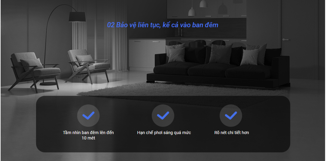 – Hỗ trợ tính năng thông minh: Phát hiện chuyển động, Phát hiện hình dạng con người, Phát hiện tiếng ồn lớn, Phát hiện chế độ tuần tra