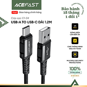 Mua tại TiktokCáp sạc ACEFAST C1-04 Type C, dòng điện lên đến 3A, chiều dài 1.2m, đầu nối hợp kim nhôm