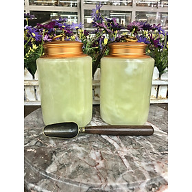 Chất liệu: Đá ngọc Onyx Kích thước: Cao 15 cm Khối lượng: 3,8 kg/ bộ Bộ sản phẩm gồm: 2 hủ đựng, 1 muỗng và 1 hộp đựng cao cấp. Cách dùng: Dùng để đựng