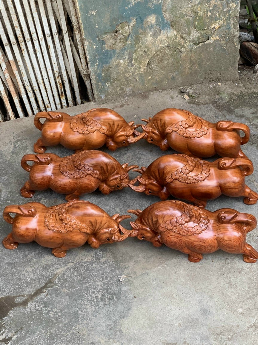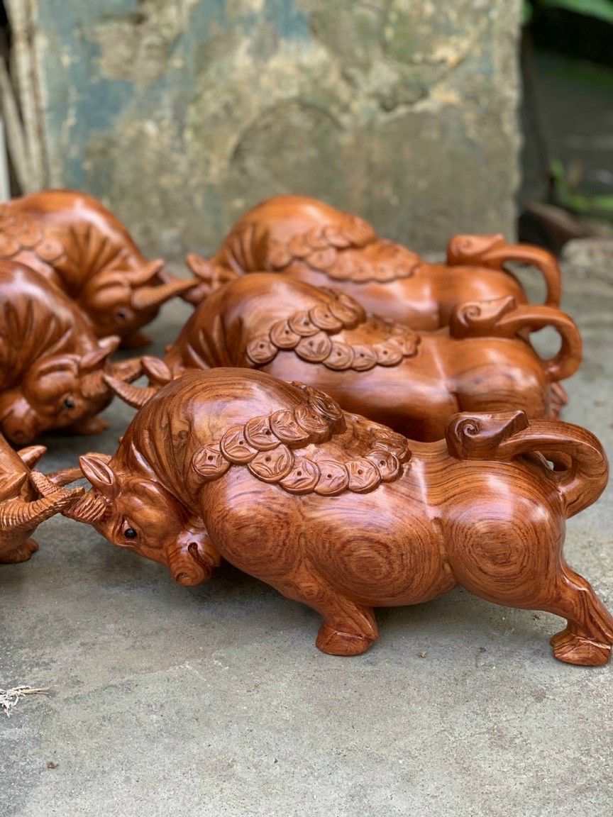 Cặp bò tót phong thủy gỗ hương ta |giá 6triệu500k 1 cặp bao pu bao ship