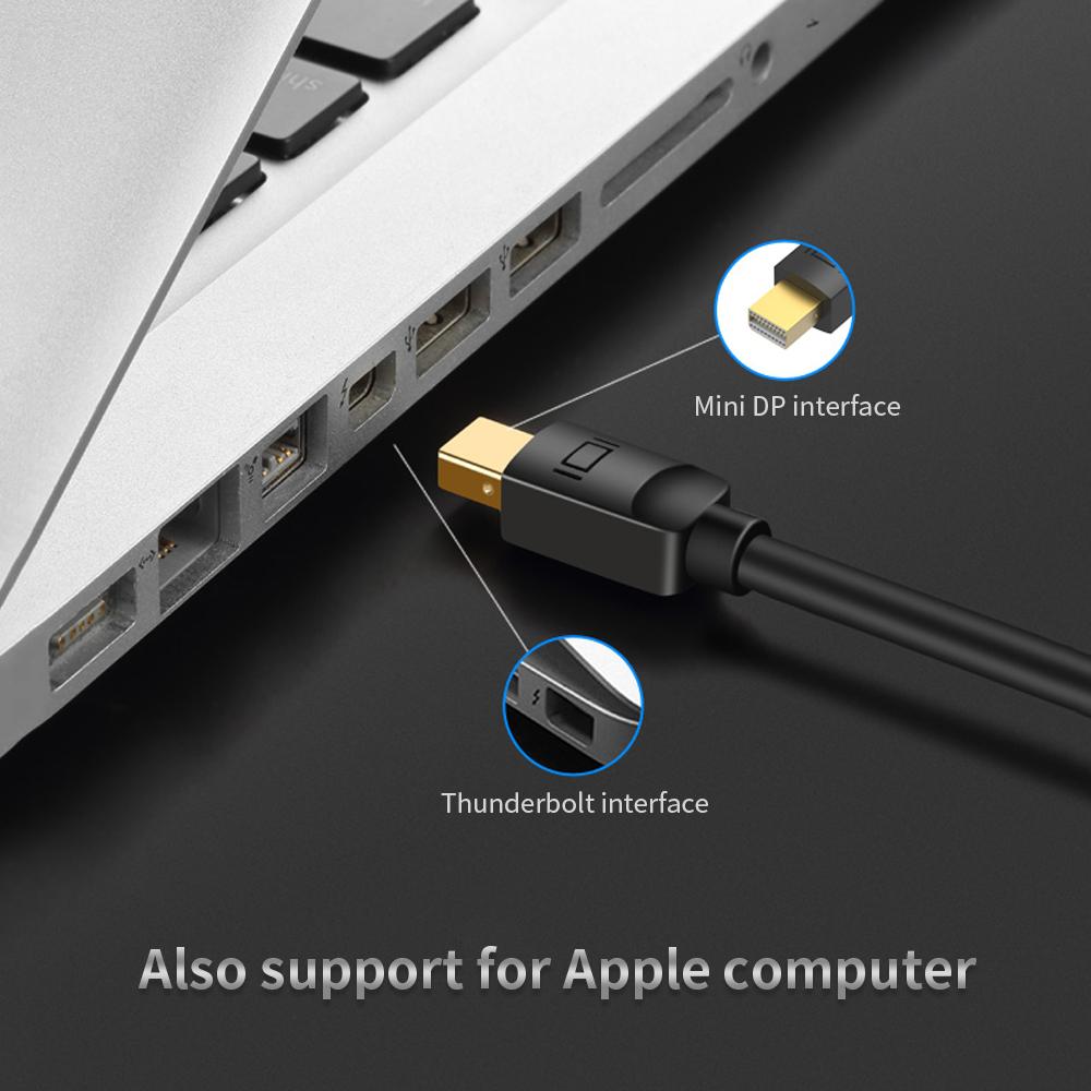 VENTION Mini DP to DP adapter cable is an indispensible assistant for you. It supports 4K 3840x2160 resolution. It directly connect your laptop or tablet to an HD monitor. It supports thunderbolt interface.