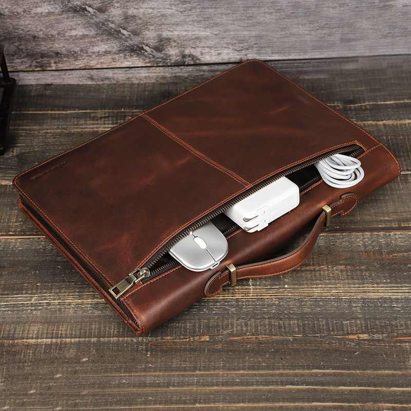 Thiết kế đơn giản nhưng tinh tế Chất liệu da thật cao cấp (da ngựa hoặc da bò) Giữ an toàn cho máy tính xách tay của bạn Chống văng nước, chống bám bụi, không