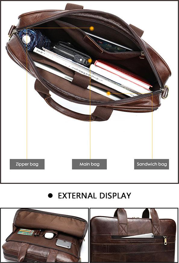 Cặp da công sở hiệu Badenroo kích thước 31 x 42 x 6.5 cm, đựng laptop 15,6 inch, cặp văn phòng