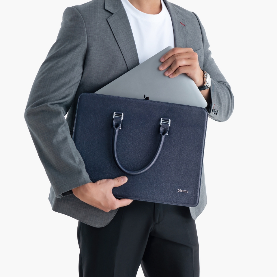 ✨Cặp Da Doanh Nhân Túi Xách Nam GENCE CGL07 Da Bò Khóa Số Cao Cấp Màu Xanh Navy